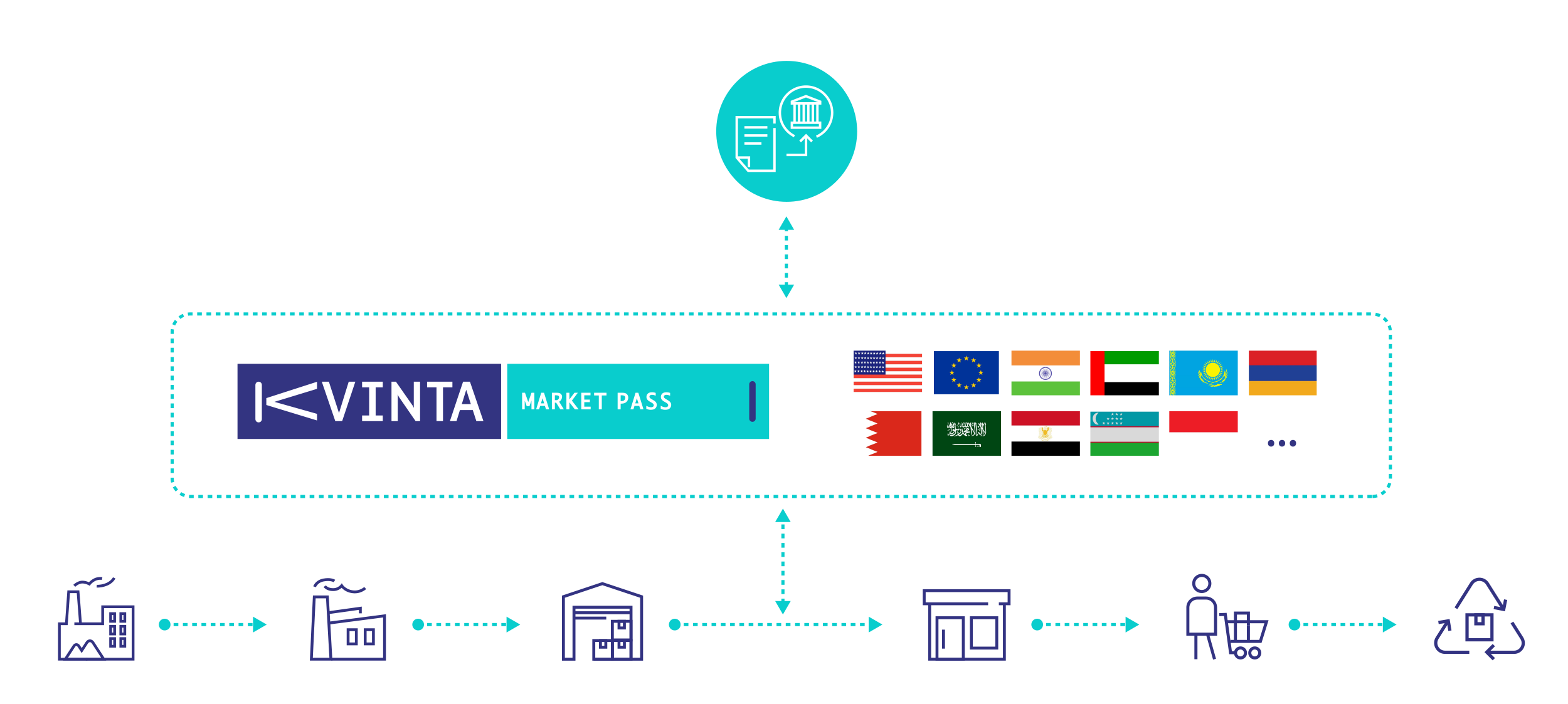 Customers connect with Kvinta Market Pass to exchange only the data required for compliance. - Compliance-focused data handling